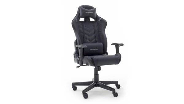 Der innovative Schreibtischstuhl DX Racer ist nicht nur für Gaming Fans konzipiert. Mit seiner einzigartigen Optik im Racing Look begeistert er ein breites Publikum. Er hat ein neues, verbessertes Design und Seiten in pflegeleichtem, schwarzen Kunstleder. Dieser Drehstuhl ist mit einem stufenlos verstellbarem Gaslift und einer verstellbaren Rückenlehne ausgestattet. Die Sitzhöhe kann variabel eingestellt werden und auch die Rückenlehne kann individuell geneigt werden. Der trendige Bürostuhl ist mit Kissen im Rücken- und Nackenbereich ausgestattet. Die maximale Belastbarkeit ist mit 110 KG angegeben und für den Einsatz werden ca. 2-3 Stunden täglich vorgeschlagen. TÜV geprüft.