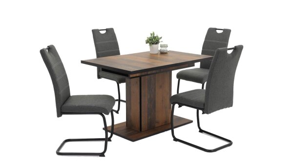 Dieser moderne Säulentisch ARIANA ist der neue Eyecatcher im Esszimmer und lässt sich mit einer praktischen Einlegeplatte auf eine Breite von 160 cm erweitern. Die natürliche Optik in Oldwood schafft in Kombination mit harmonischen Absetzungen in schwarz, ein stimmiges und einladendes Gesamtbild.