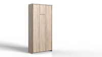 Klappbett JUIST erhalten Sie ein schickes und platzsparendes Gästebett, das jederzeit als Schlafplatz verfügbar ist. Das Schrankbett in Eiche Dekor ist besonders praktisch bei kleinen Räumen oder als Jugendbett, das bei Nichtgebrauch einfach zugeklappt werden kann. Es hat eine Liegefläche von 90x200 cm und lässt sich mit nur einem Handgriff vertikal aus- oder zuklappen. Und dank der Fußstützen erhält es eine komfortable Liegehöhe.