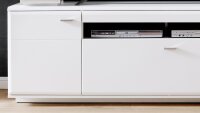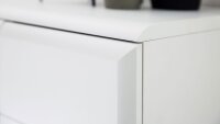 Schönes Lowboard AMORA mit viel Stauraum und einer Optik in weiß matt tiefzieh. Der 195 cm breite Schrank besitzt zwei Türen, zwei Fächer und eine Schublade mit praktischer Dämpfung. Griffe in Metall Nickel matt runden das Gesamtbild gekonnt ab. Weitere Möbel aus dem Programm AMORA finden Sie in unserem Online Shop.
