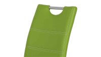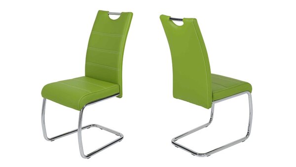 Dieser moderne Schwingstuhl FLORA wird als 4er Set angeboten und besitzt eine schöne Kombination aus stilvollem grün, weißen Nähten und einem verchromten Metallgestell. Der fest gepolsterte Sitz sorgt für ein angenehmes Sitzgefühl und ist max. 120 kg belastbar.