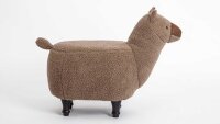 Dieser kleine, bequeme Hocker präsentiert sich in der Gestalt eines Lamas und ist ein toller Hingucker in Flur, Kinderzimmer und Spieleecke. Die große, gepolsterte Sitzfläche auf dem Rücken des Tieres wird hier von vier robusten, schwarz lackierten Beinen aus Massivholz getragen und ist - wie auch der Rest des Alpakas - angenehm kuschlig gestaltet. Frei von scharfen Kanten und aus pflegeleichten Materialien hergestellt, zeigt sich der Tierhocker zudem langlebig und robust - und garantiert damit langfristigen Spielspaß!