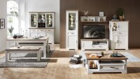 - 1x Vitrine mit 1x Glastür, 1x Holztür und 1x Schubkasten