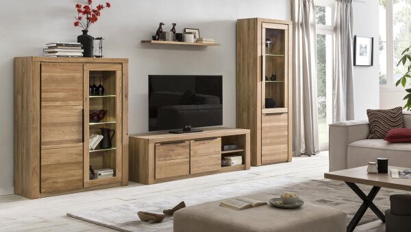 Wohnwand GRETA in Eiche teilmassiv, 4-teilig